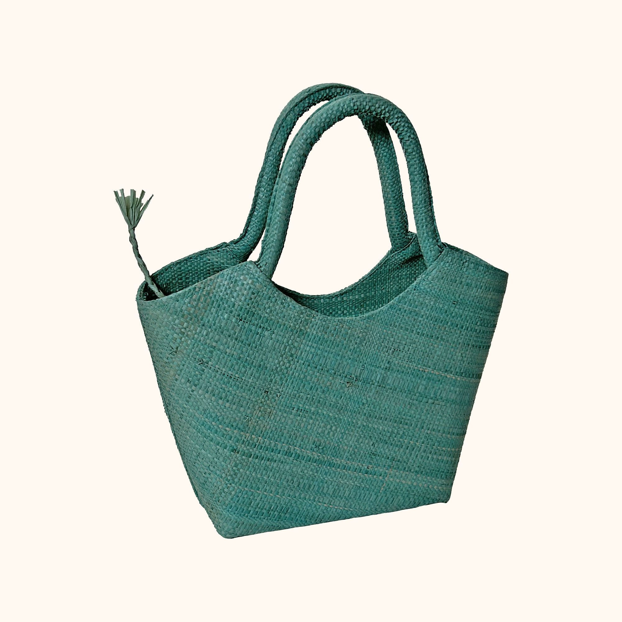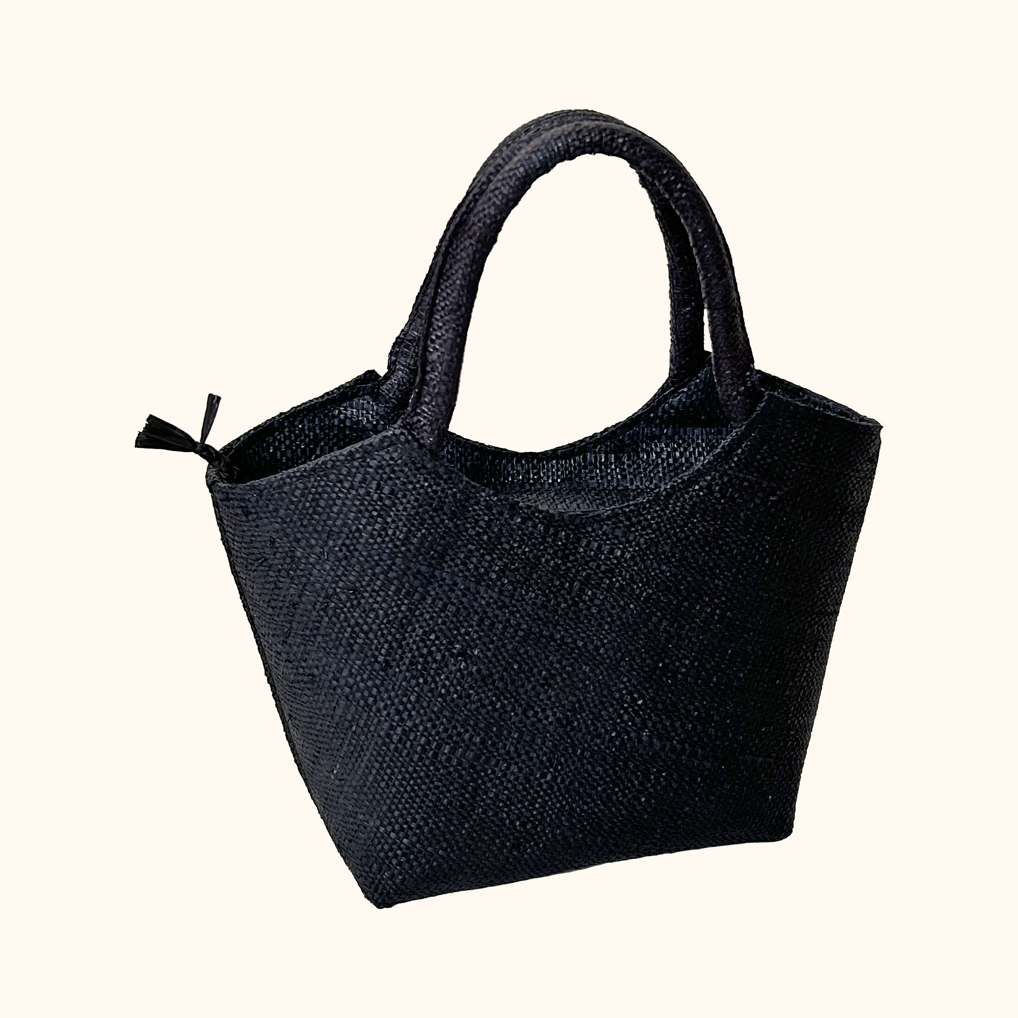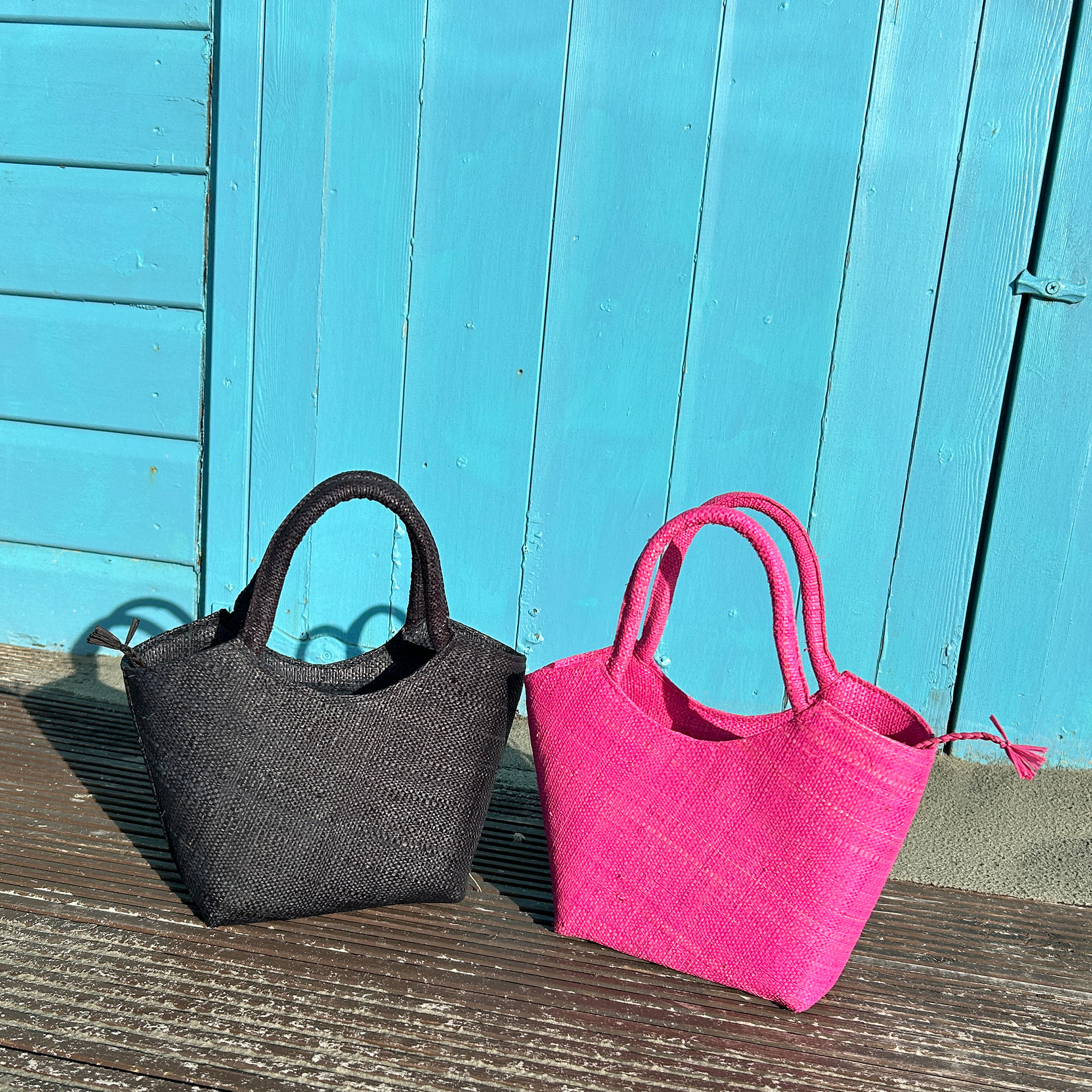 Handwoven with sustainable raffia.  They have raffia handles, as well as a cotton lining with an inner pocket and a zip fastening with a small raffia tassel.
